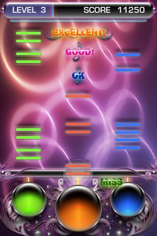 Once your enter the finger dance game, the colorful bricks will fell down in several rows, the number of which is dependent on the difficulty of this dance game. When the bricks approach the line at the bottom, please click the corresponding circles. You will feel the tempos and rhythms of the music. If you actually cannot feel the tempos and rhythms of the music, please listen to the music at first and feel the music and shakes of your phone. We believe that you will finally get the music!